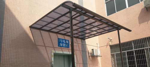 頂棚采用進(jìn)口聚碳酸酯板,抗沖擊是玻璃的數(shù)百倍,有效防止高空墜物