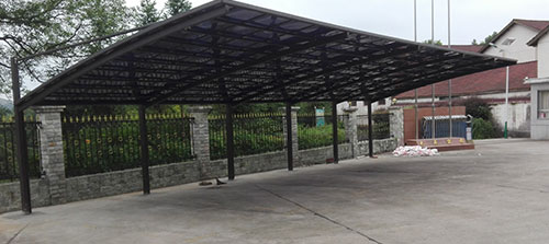 所以材料加工到位,專(zhuān)業(yè)配件連接,現(xiàn)場(chǎng)拼接,無(wú)需焊接,安裝時(shí)間比傳統(tǒng)車(chē)棚快一倍