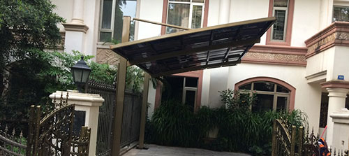頂棚采用進(jìn)口聚碳酸酯板,抗沖擊比玻璃強(qiáng),有效防止高空墜物