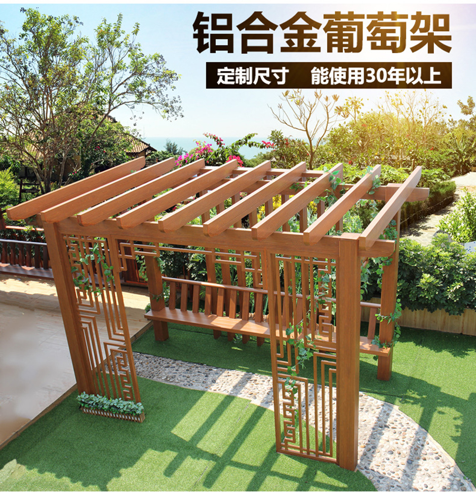 近些年來(lái),鋁制涼亭受到了很多人的青睞,因?yàn)殇X制涼亭材質(zhì)硬不易老化,后期基本不用維護(hù),其外觀經(jīng)過(guò)木紋處理轉(zhuǎn)印后,質(zhì)地顏色都和木頭很相似,從遠(yuǎn)處更是看不出來(lái)區(qū)別,經(jīng)風(fēng)摧日曬也不易掉色、老化、干裂,而這些在木制涼亭中都無(wú)法避免。而且鋁制涼亭建造后牢固性也很好!