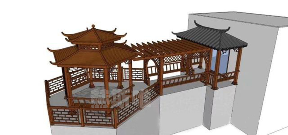 廊是亭的延伸,是聯(lián)系風景景點建筑的紐帶,隨山就勢,曲折迂回,逶迤蜿蜒。廊既能引導視角多變的導游交通路線,又可劃分景區(qū),豐富空間層次增加景深,是中國園林建筑群體中重要組成部分。
