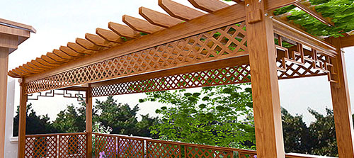 涼亭廊架 鋁合金系列是演繹自然與生活的交融,創(chuàng)新的鋁合金框架加以表面木紋處理完美承襲生活所追求自然的經(jīng)典魅力,而它的設(shè)計靈魂正是根源于當下所倡導的自然環(huán)保。此外,采用完美的建筑材料——水印氟碳木紋鋁型材,可在視覺上營造出與自然對稱和諧之美,并具有耐候性、耐磨損、耐腐蝕性,硬度高、不易變形、仿木真圖案不褪色、不脫落等優(yōu)越特點,呈現(xiàn)出自然與環(huán)保的平衡布局,成為經(jīng)久不衰的典雅風格化身。