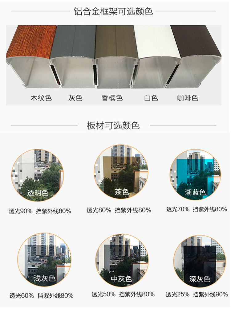 板材顏色:透明、茶色、淺灰色、深灰色、藍(lán)色