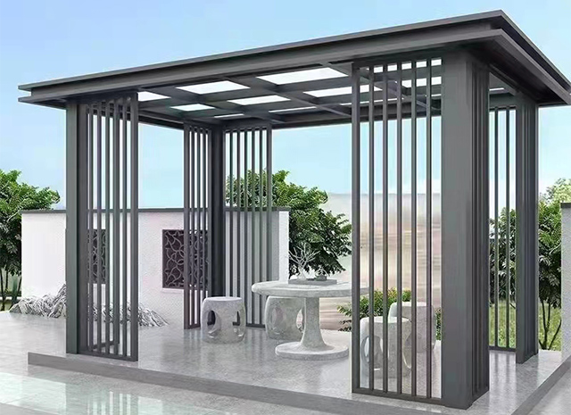 7、新中式鋁合涼亭顏色豐富,可供選擇的顏色眾多。既具有天然木質(zhì)感和木質(zhì)紋理,又可以根據(jù)自己的個(gè)性來(lái)定制需要的顏色。