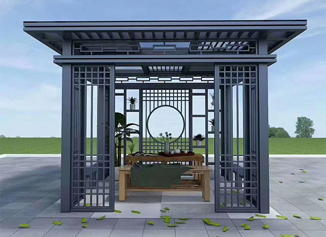 1、新中式鋁合金涼亭安裝簡(jiǎn)單,施工便捷,不需要繁雜的施工工藝,節(jié)省安裝時(shí)間和費(fèi)用。