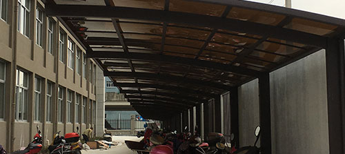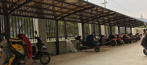 所以材料加工到位,專業(yè)配件連接,現(xiàn)場拼接,無需焊接,安裝時間比傳統(tǒng)車棚快一倍