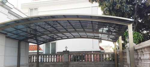 頂棚采用進(jìn)口聚碳酸酯板,抗沖擊是玻璃的數(shù)百倍,有效防止高空墜物
