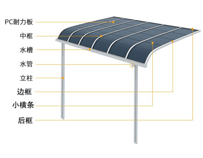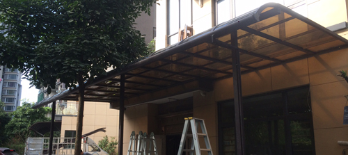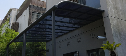 頂棚采用進(jìn)口聚碳酸酯板,抗沖擊是玻璃的數(shù)百倍,有效防止高空墜物