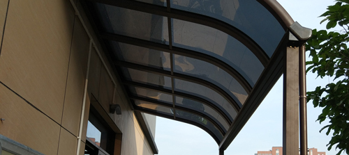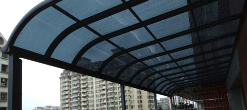 頂棚采用進(jìn)口聚碳酸酯板,抗沖擊是玻璃的數(shù)百倍,有效防止高空墜物